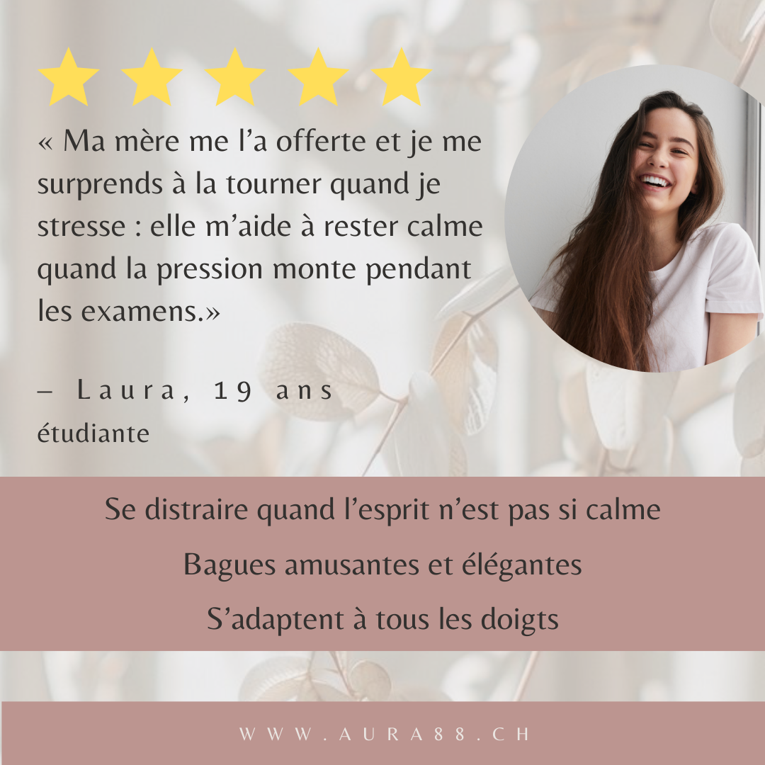 "Au début je pensais que c’était juste un bijou sympa, mais je me rends compte que je joue souvent avec quand je stresse en cours. Ça m’aide à me calmer sans même y penser."