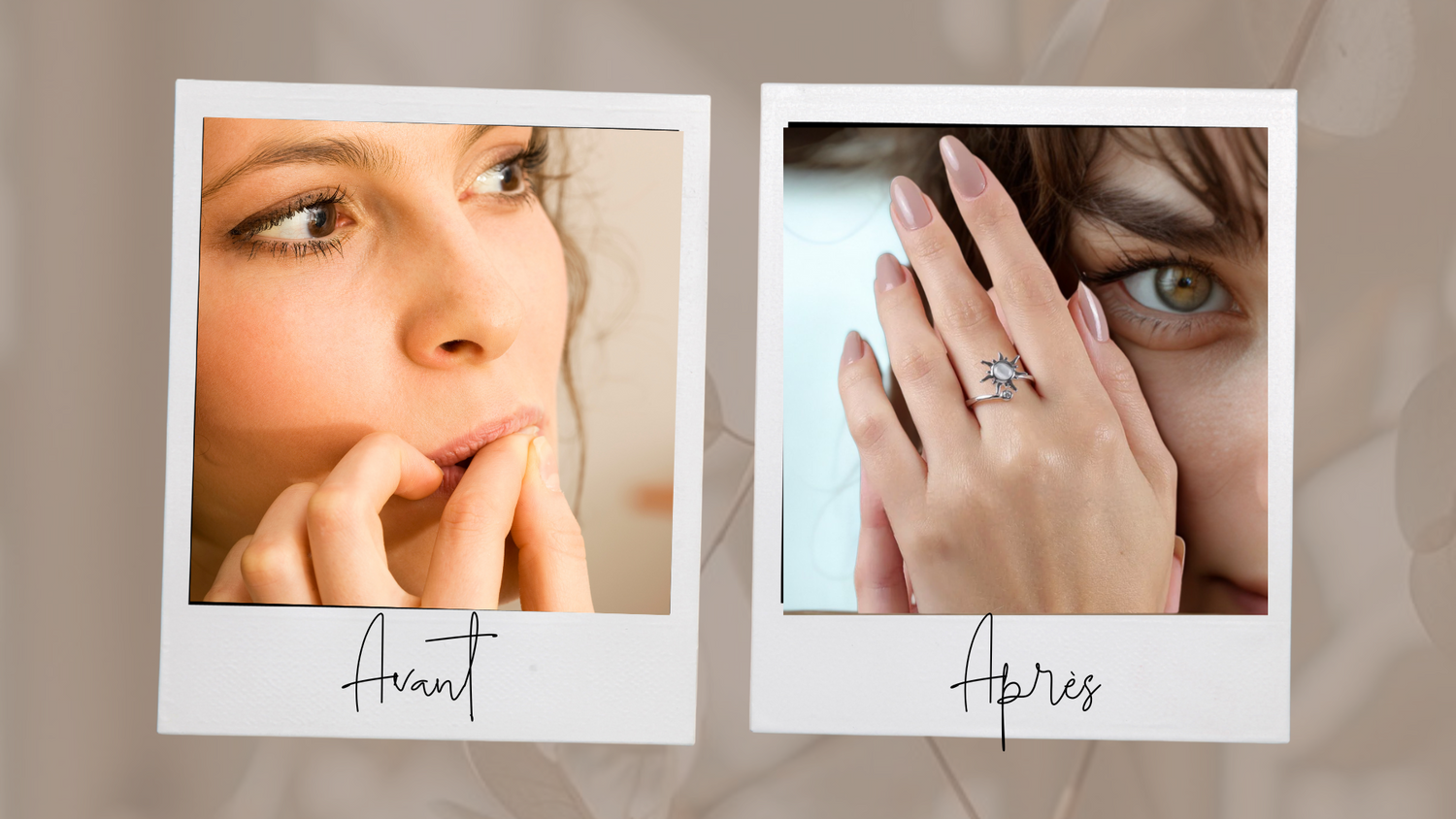 Nos bagues anti-stress sont équipées d’un anneau rotatif discret que vous pouvez faire tourner du bout des doigts. Ce geste répétitif crée un effet d’ancrage : il détourne votre attention des pensées parasites et aide à calmer le flux mental.